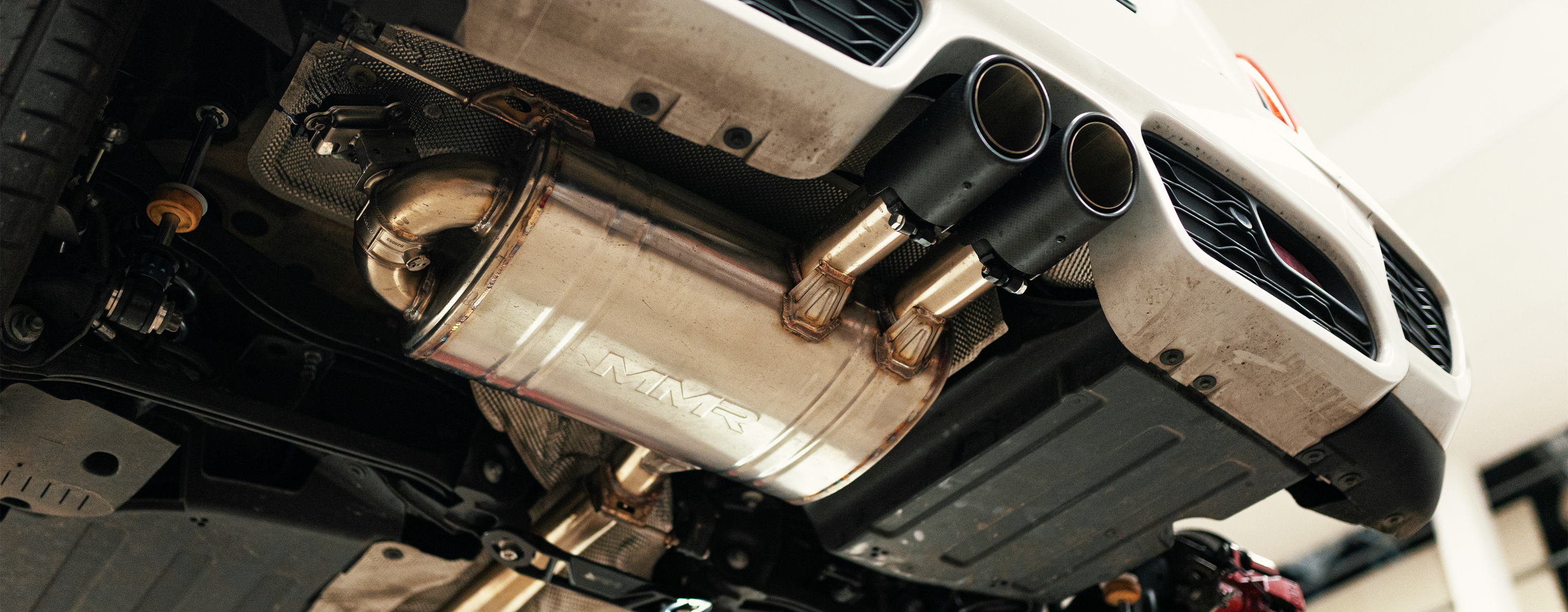 Con cualquier sistema de escape de mayor diámetro, los soportes originales no dejan suficiente espacio libre. Por lo tanto, en lugar de retirar por completo los soportes del túnel (como hacen algunos), los soportes de bajos MMR permiten reemplazarlos, lo que proporciona el espacio libre necesario y mantiene la crucial rigidez de la carrocería.